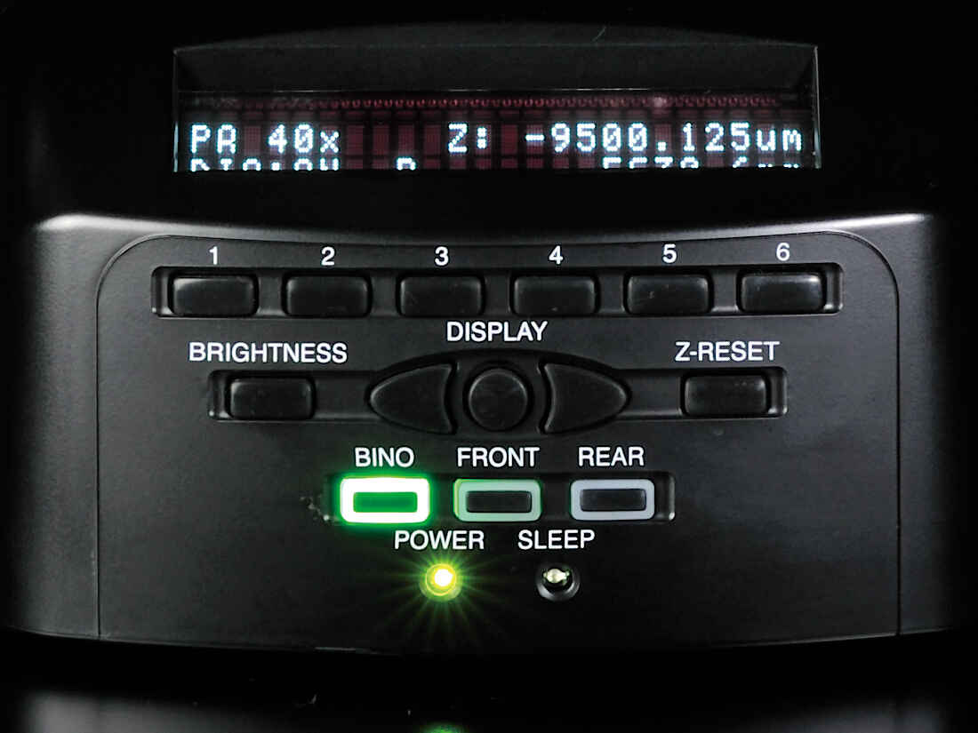 Hầu hết các nút điều khiển kính hiển vi đều có thể được vận hành bằng các nút bấm dễ tiếp cận ở mặt trước của Ni-E. Các nút điều khiển ở hai bên kính hiển vi được thiết kế góc cạnh, cho phép thao tác cảm ứng trực quan trong quá trình quan sát. Kính hiển vi cũng có màn hình hiển thị trạng thái, cho phép dễ dàng kiểm tra cài đặt kính hiển vi hiện tại.